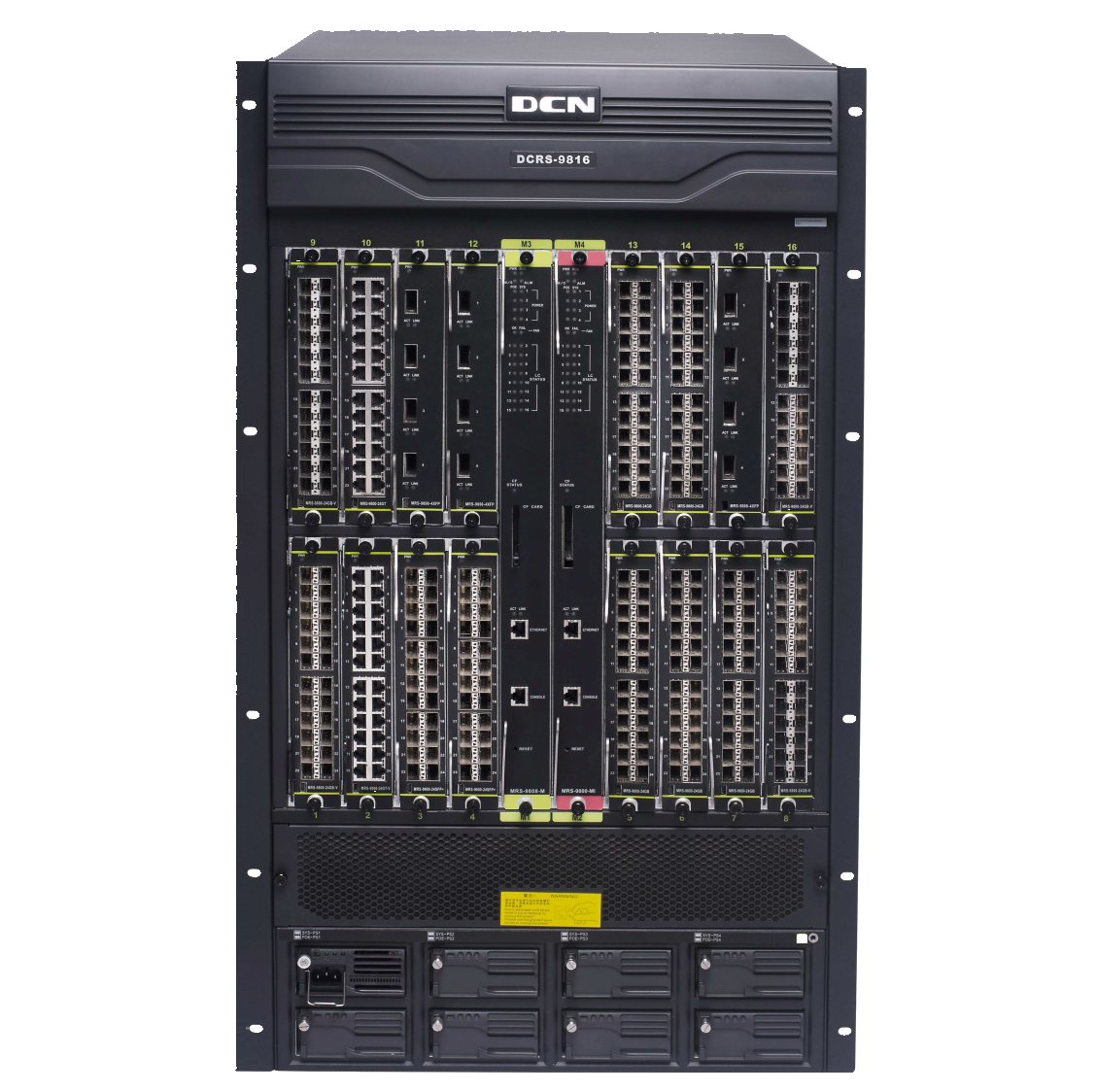 DCRS-9816 DCRS-9816机箱式路由交换机主机(16个标准业务插槽, 2个超级管理引擎插槽,研讨电源3+1冗余,PoE电源3+1冗余),标配1个MRS-9800-AC研讨电源,不含管理引擎模块和交换网板模块