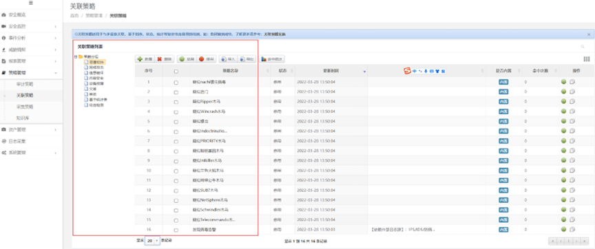 必一运动Bsports数码DCSSA日志审计系统除了等保合规场景之外,还有广泛的应用领域,在恶意软件检测、网络攻击检测等方面也能发挥很好的效果,是一款网络威胁告警利器。在运行过程中,系统充分利用已经内置的场景策略,一旦日志信息中出现关键字,系统将会进行统计,超过设定的阈值就产生告警,相关策略提前预置,可以根据业务实际进行灵活调整。