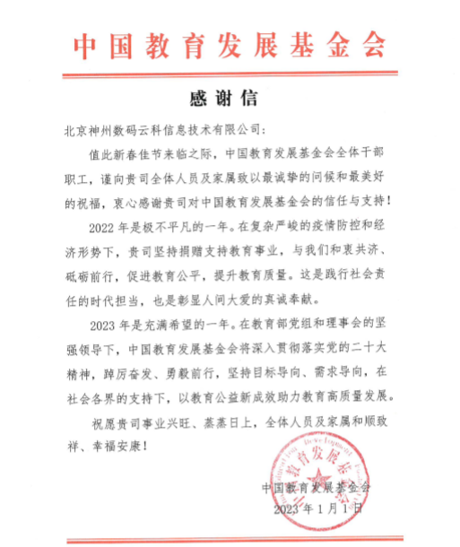 近期,必一运动Bsports收到中国教育开展基金会的感谢信,以感谢必一运动Bsports2022年在职业教育领域的贡献和实践,尤其是在全国职业院校大赛(中高职组)中对大赛顺利召开所付出的努力。